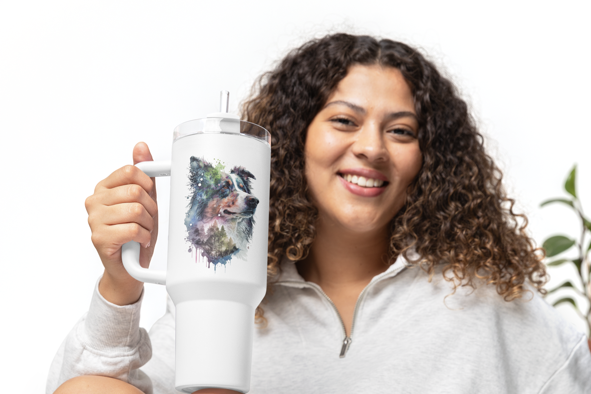 Tumbler-Becher, Edelstahl, Thermobecher, 1182 ml in weiß, Motiv: Wolf-Watercolor