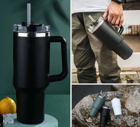 Tumbler-Becher Edelstahl Thermobecher mit Griff Deckel und Strohhalm Auslaufsicher 40oz 1200ml